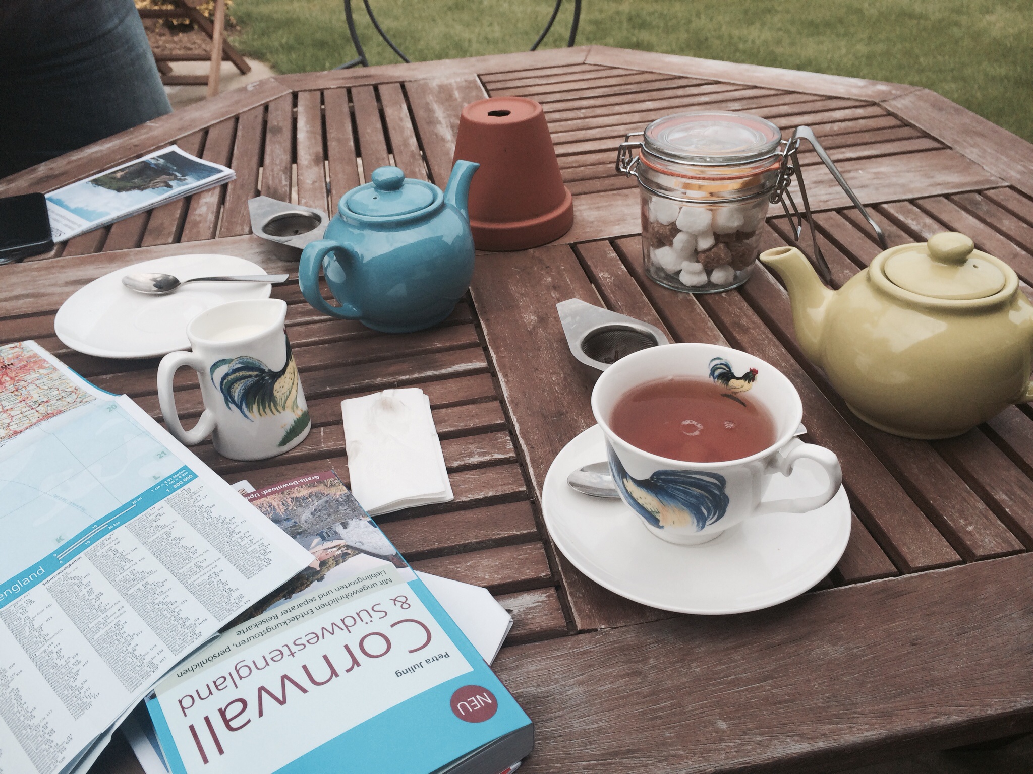 Durch das Verkehrte-Welt-Spiel auf den Straßen benötigte der durchgeschwitzte Fahrer schon bald eine Pause. Den Landessitten angepasst wurde erst einmal ein Tee bestellt. Der Tearoom gehörte zu einer kleinen Farm und es war sehr englisch. Toll!
