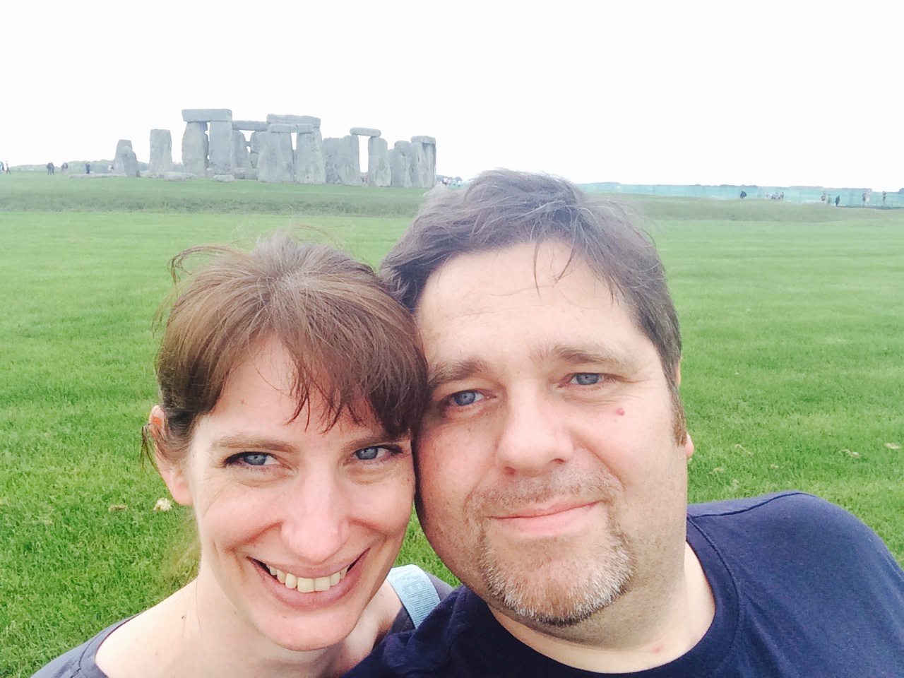 Hier ein selbst Porträt der anwesenden Weltenbummler. Im Hintergrund sieht man Stonehenge.